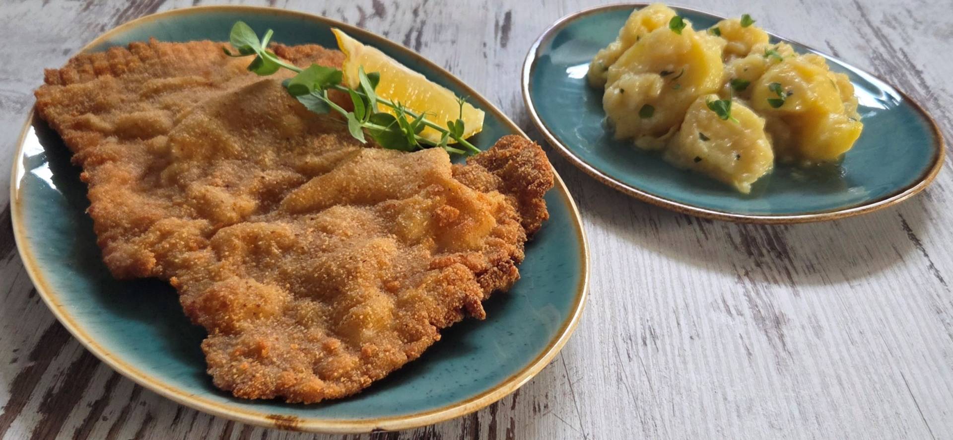 rántott szelet ropogós bundában (200 gr.), bécsi burgonyasalátával