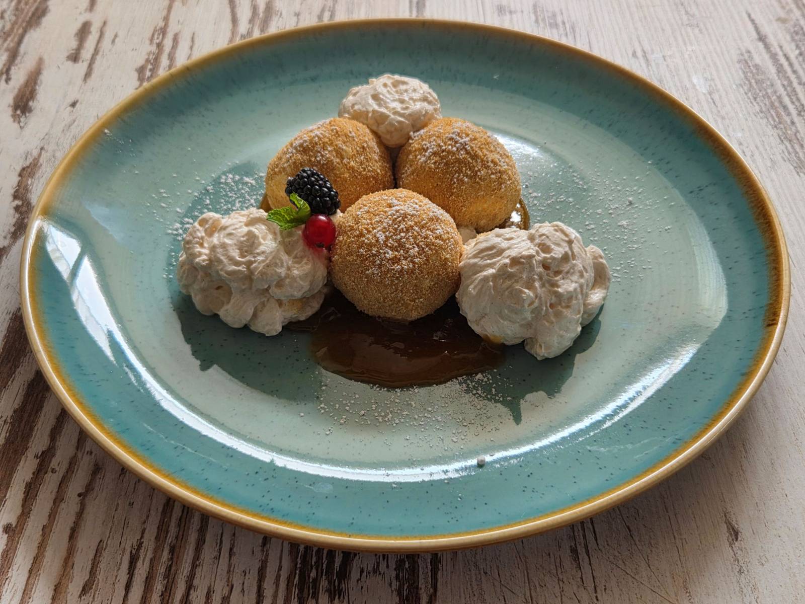 - asztalt szilvával mozzarella sajttal töltött csirkemell rántva, áfonya lekvár